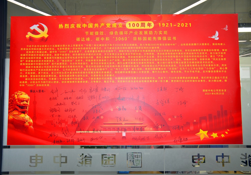 作為能源環(huán)保領(lǐng)域有知名影響力和行業(yè)引領(lǐng)性的企業(yè),國能中電積極踐行國家“碳中和”生態(tài)戰(zhàn)略,近年來大力發(fā)展生物質(zhì)能、風光生物質(zhì)制儲氫一體化等清潔能源項目,助力國家“3060” 目標的實現(xiàn)。在建黨100周年的良好時機,國能中電黨總支發(fā)起了黨員社會責任倡議,號召全體黨員及廣大員工以碳達峰、碳中和“3060”目標為指引,夯實低碳轉(zhuǎn)型發(fā)展理念,推動綠色循環(huán)經(jīng)濟模式創(chuàng)新實踐,發(fā)揮企業(yè)多年來在節(jié)能環(huán)保、生物質(zhì)能、清潔能源等領(lǐng)域積淀的寶貴經(jīng)驗和先進技術(shù),踐行企業(yè)社會責任,推動綠色產(chǎn)業(yè)發(fā)展,助力碳達峰、碳中和“3060”目標的實現(xiàn)。