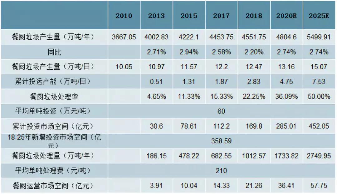 餐廚垃圾投資及運營市場空間測算