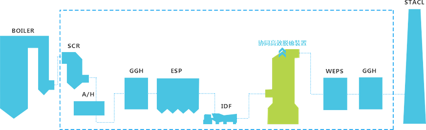 煙氣污染物協(xié)同脫除技術(shù)系統(tǒng)(SRS)是指在一設(shè)備內(nèi)同時(shí)脫除兩種及以上煙氣污染物,或者為下一流程設(shè)備脫除污染物創(chuàng)造有利條件,實(shí)現(xiàn)煙氣污染物在多個(gè)設(shè)備中高效聯(lián)合脫除,同時(shí)實(shí)現(xiàn)良好的節(jié)能效果的技術(shù)。國(guó)能中電系統(tǒng)地研究脫硝、除塵和脫硫之間的協(xié)同關(guān)系,充分考慮各類污染物的綜合脫除效果,通過(guò)系統(tǒng)性的設(shè)計(jì),達(dá)到多種污染物的協(xié)同脫除的目的,實(shí)現(xiàn)最優(yōu)的排放指標(biāo)、最好節(jié)能效果和環(huán)保裝置的運(yùn)行經(jīng)濟(jì)性。